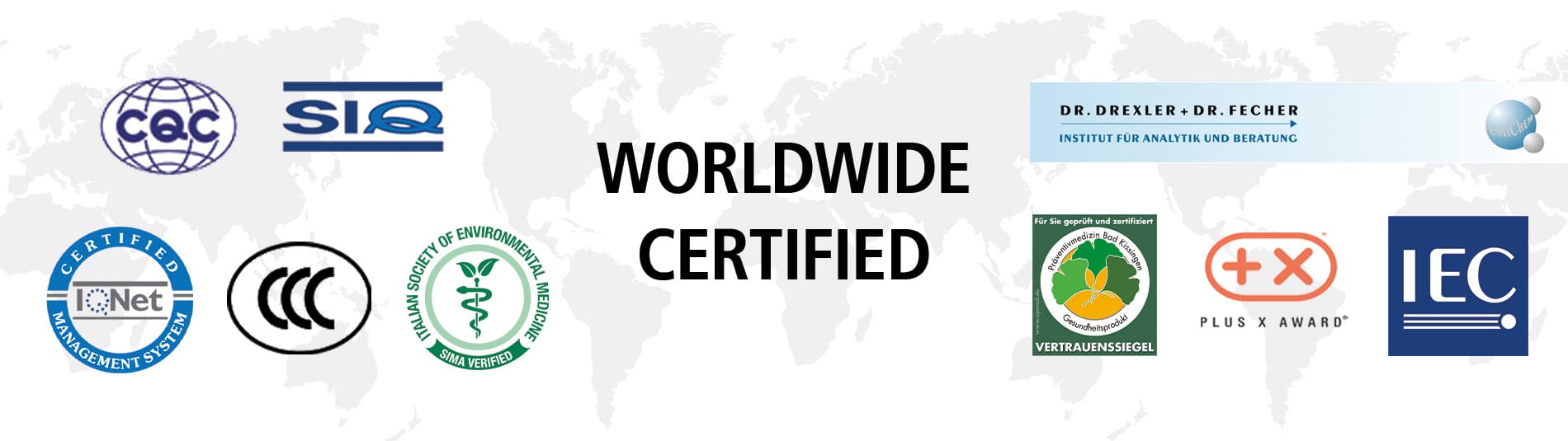 Το HYLA είναι πιστοποιημένο σε όλο τον κόσμο. Τα πιο σημαντικά πιστοποιητικά για εμάς είναι αυτά που επιβεβαιώνουν την ασφάλεια των προϊόντων παγκόσμιων προτύπων στους πελάτες μας. Άλλα πιστοποιητικά όπως το Best Product Worldwide ή το Most Innovative Brand, για να αναφέρουμε μόνο μερικά, επιβεβαιώνουν την υψηλή ποιότητα του προϊόντος και της εταιρείας μας.
